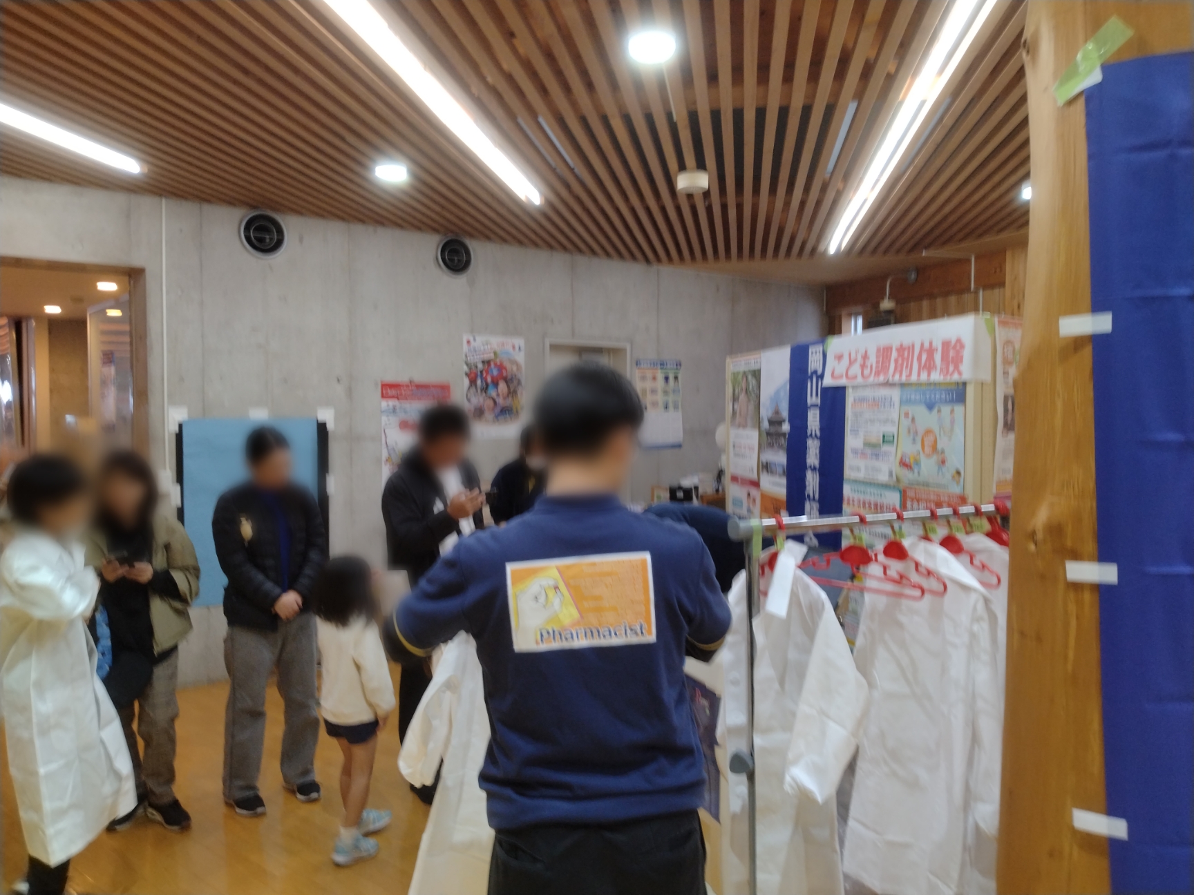 ご参加されている方々のお薬相談、ベジチェック(日頃の野菜摂取量の測定)、子ども調剤体験などを行いました。