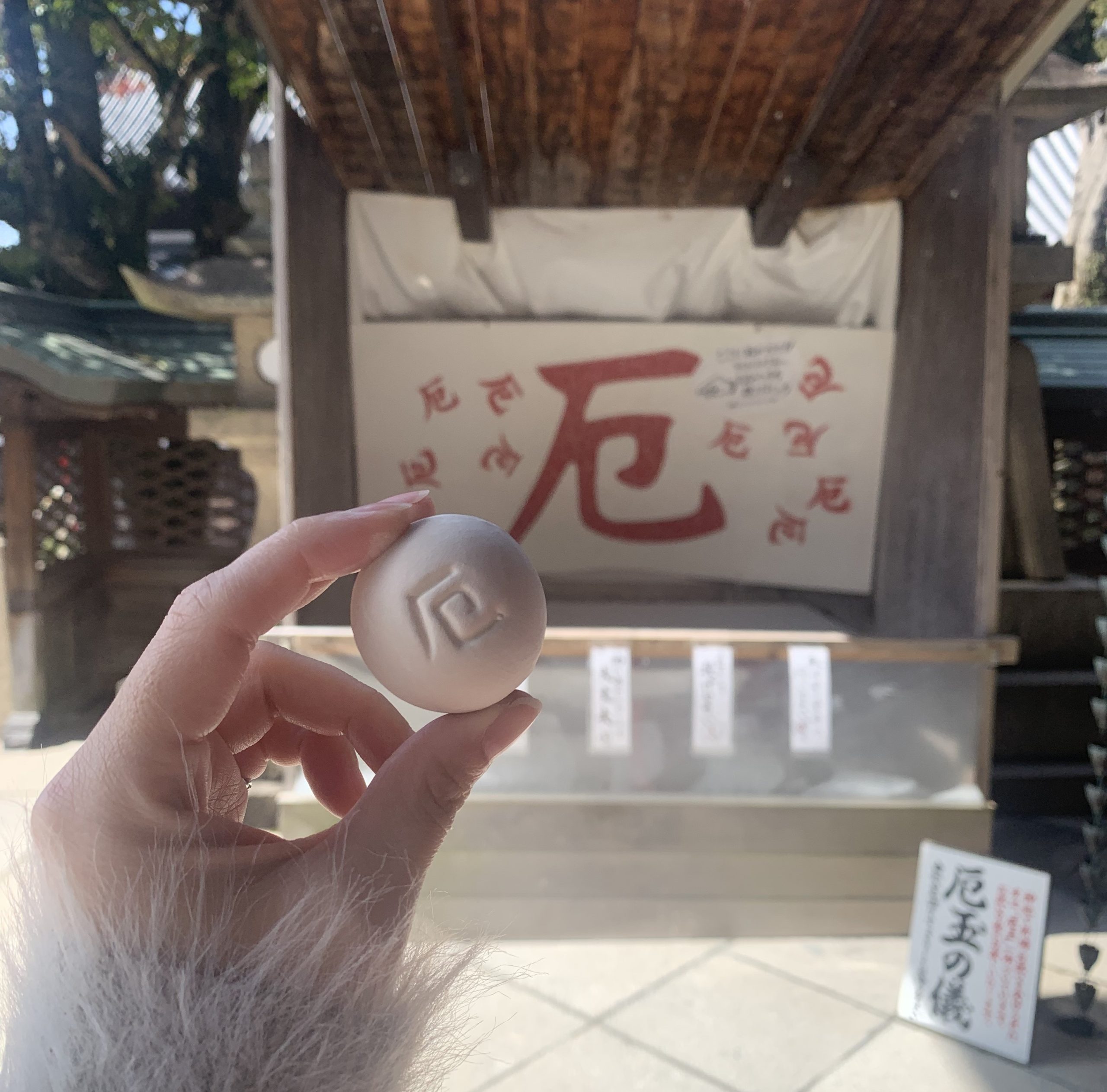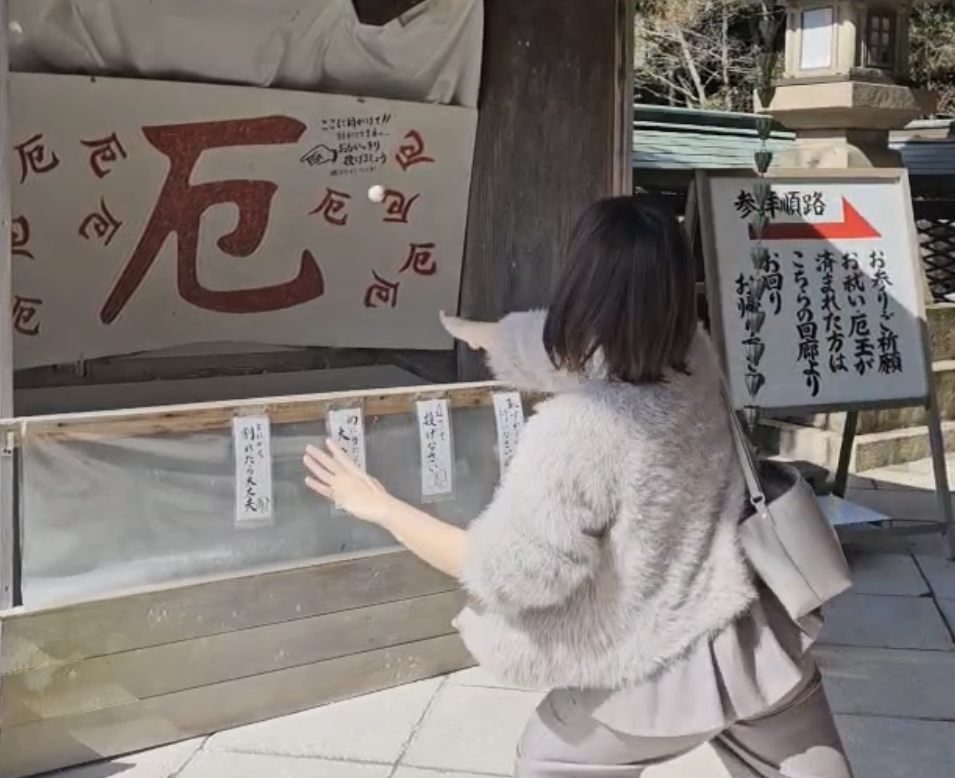 厄玉に「ふぅ~」と息を吹きかけて自分の厄を封じこめて・・・